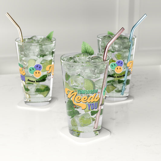 Tomorrow Needs You Retro Pint Glass - Personalized Mental Health Support Drinkware, Custom Clear Glass for Daily Encouragement