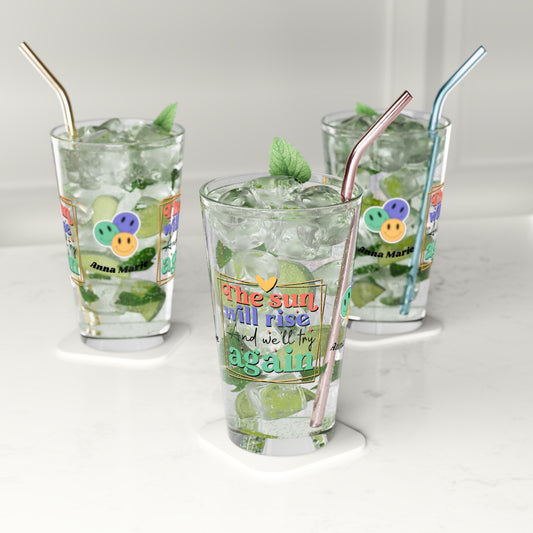 The Sun Will Rise Again Retro Pint Glass - Personalized Mental Health Quote Drinkware, Clear Glass for Hope & Emotional Healing
