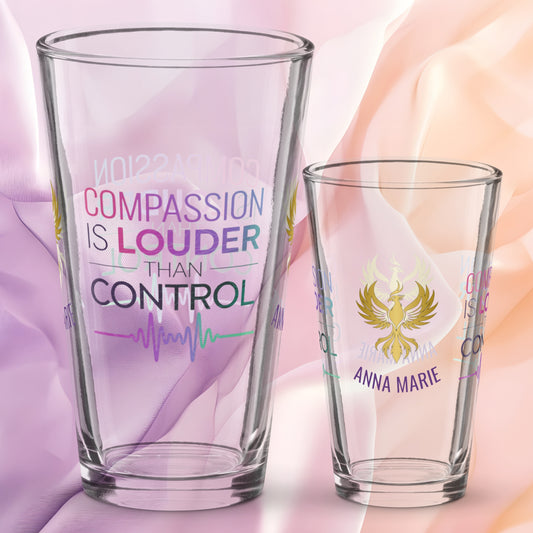 Compassion Is Louder Than Control Pint Glass, Mental Health Support Glass