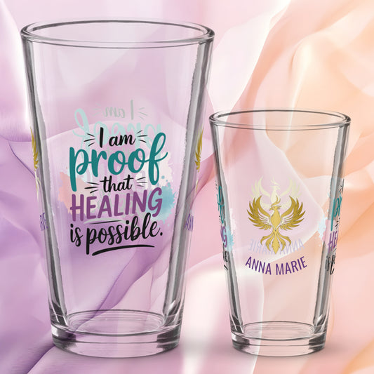 I Am Proof That Healing Is Possible Pint Glass, Trauma Recovery Drinkware