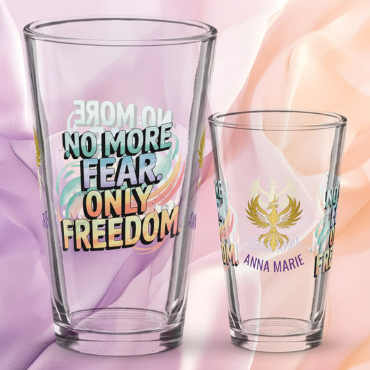 No More Fear, Only Freedom Pint Glass, Abuse Recovery Drinkware