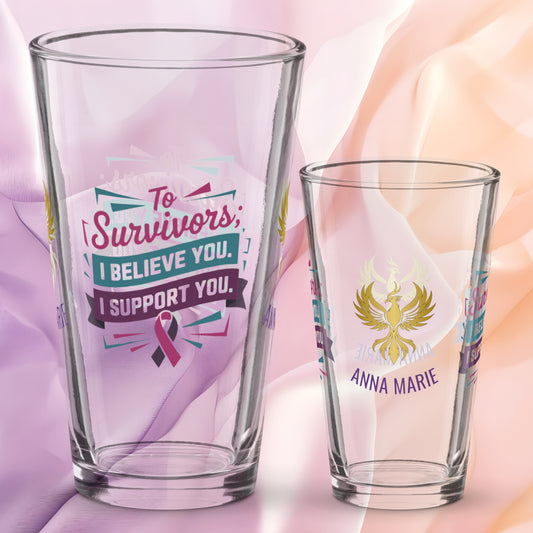 To Survivors, I Believe You, I Support You Pint Glass, Advocacy Drinkware