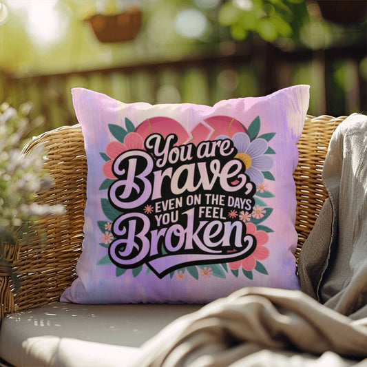 You Are Brave Even on the Days You Feel Broken - Personalized Indoor/Outdoor Pillow, Healing Gift