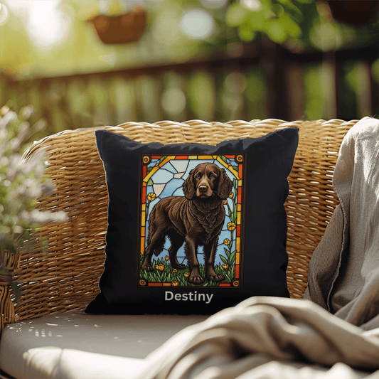 American Water Spaniel Stained Glass Pillow - Custom Throw for Couch & Garden
