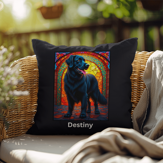Black Labrador Retriever Stained Glass Pillow - Personalized Indoor/Outdoor Art