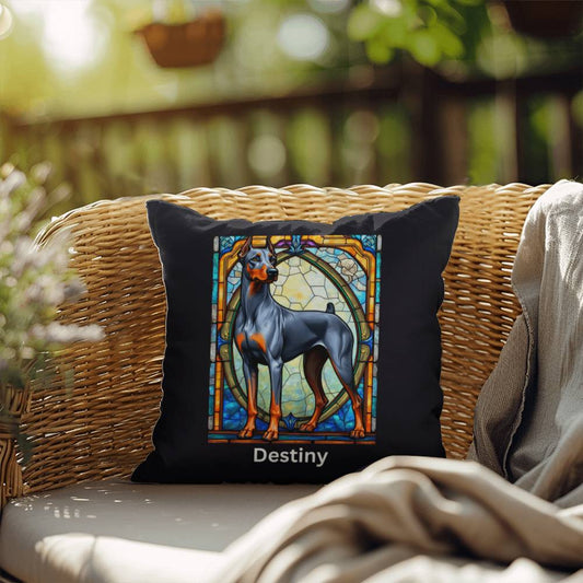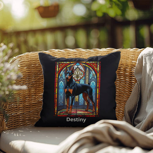Black & Rust Doberman Stained Glass Pillow - Personalized Dog Decor