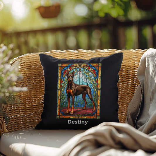 Brown & Rust Doberman Pillow - Custom Stained Glass Art with Name Personalization