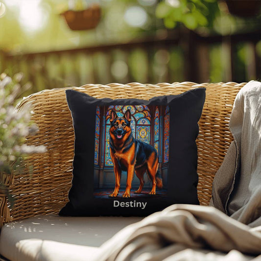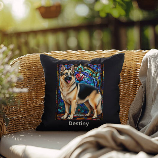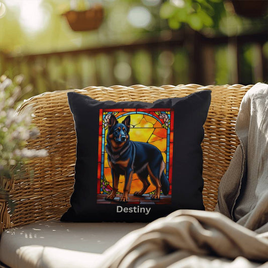 Black German Shepherd Pillow - Personalized Stained Glass Art, Indoor/Outdoor Gift