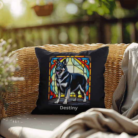 Black & Silver German Shepherd Pillow - Personalized Stained Glass Art