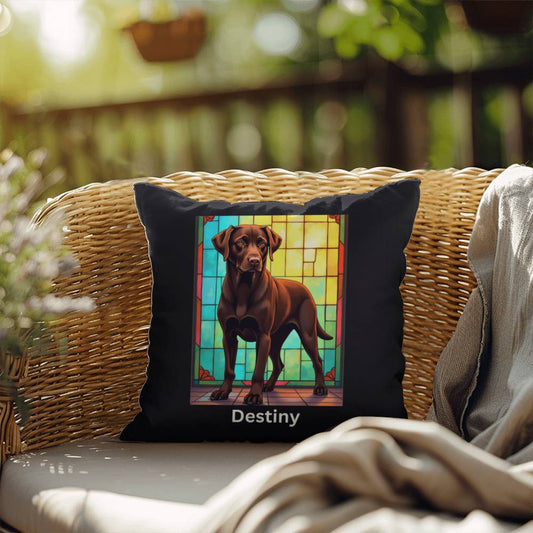 Chocolate Labrador Retriever Pillow - Custom Stained Glass Art, Indoor/Outdoor Decor