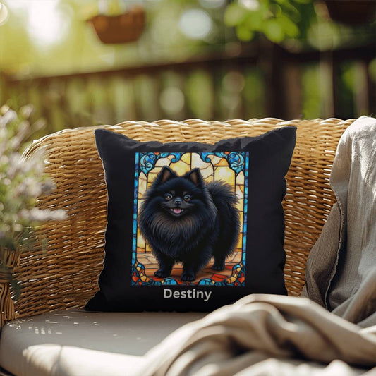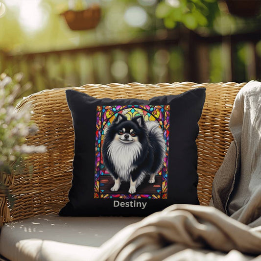 Black & White Pomeranian Stained Glass Pillow - Personalized Indoor/Outdoor Gift