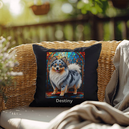 Blue Merle Pomeranian Pillow - Personalized Stained Glass Fluffy Pom Art