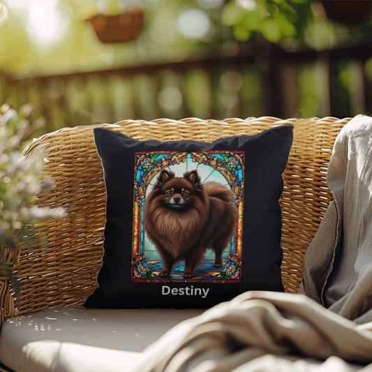 Chocolate Pomeranian Pillow - Custom Stained Glass Decor, Indoor/Outdoor Gift