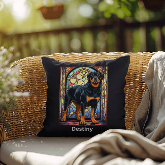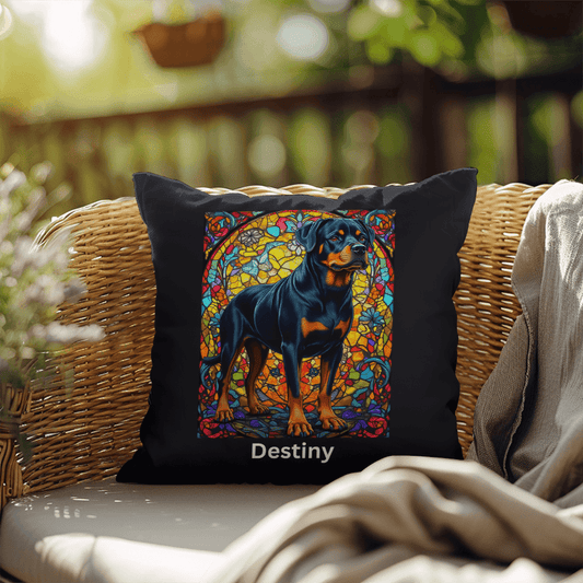 Black & Mahogany Rottweiler Pillow - Personalized Stained Glass Decor