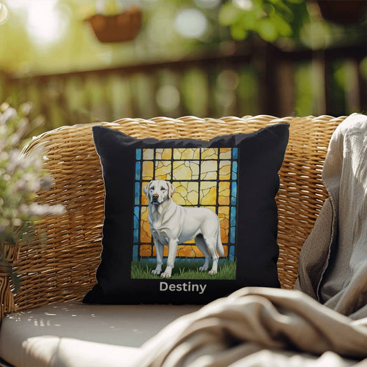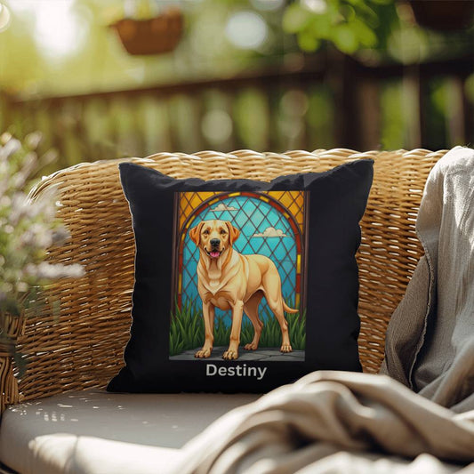 Yellow Labrador Retriever Pillow - Personalized Stained Glass Art for Home or Patio