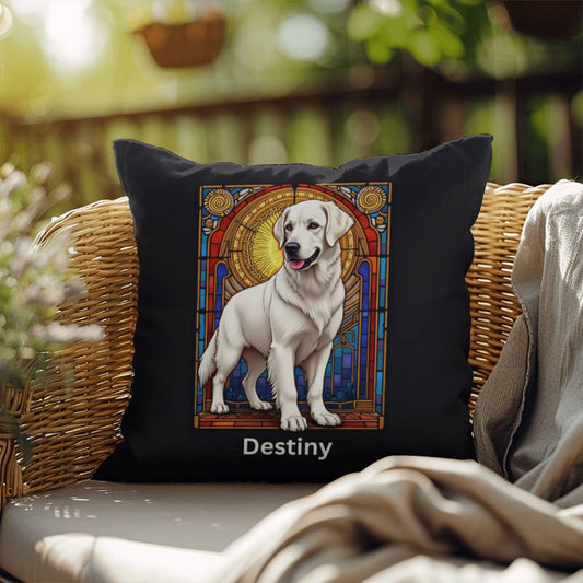 White Labrador Retriever Pillow - Custom Name, Stained Glass Dog Decor