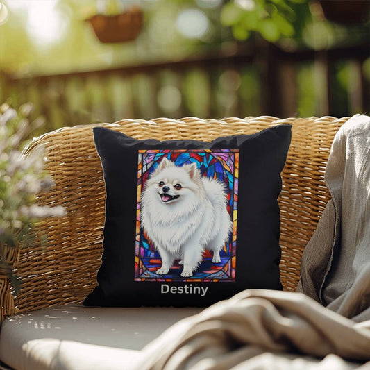 White Pomeranian Pillow - Personalized Stained Glass Art, Indoor/Outdoor Decor