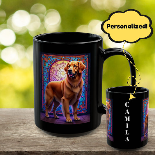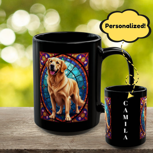 Black Golden Retriever Custom Mug - Personalized Stained Glass Dog Lover Gift