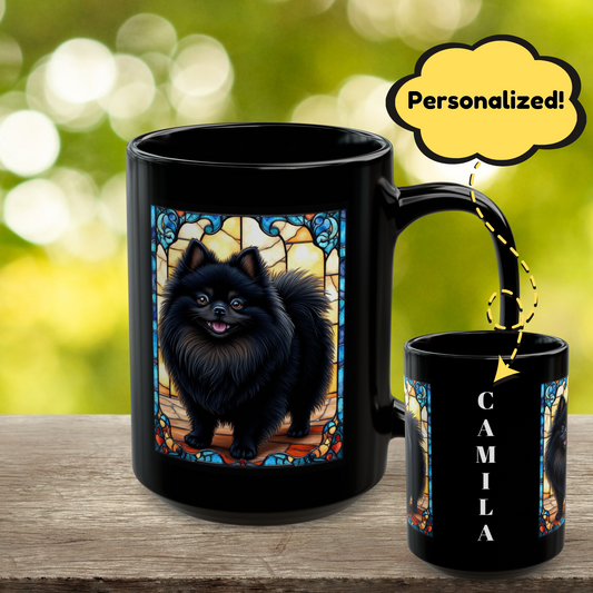 Pomeranian (Black) Personalized Mug - Custom Dog Coffee Cup, Fluffy Pet Parent Gift