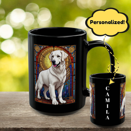 White Golden Retriever Personalized Coffee Mug - Unique Stained Glass Dog Gift