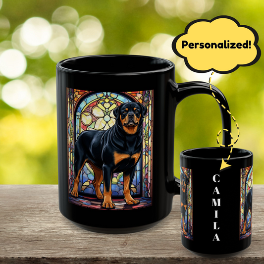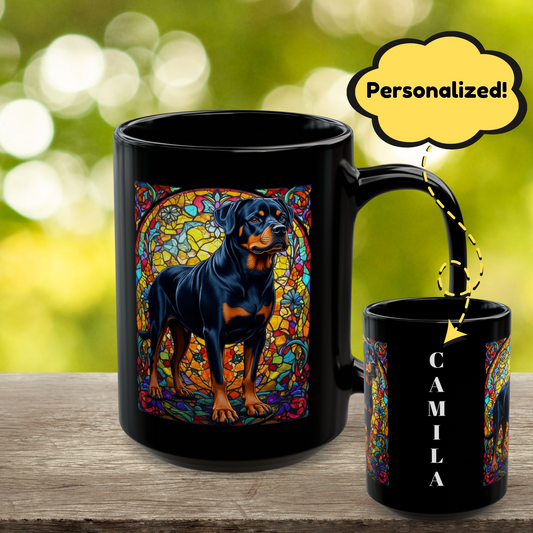Rottweiler (Black) Personalized Mug - Custom Dog Coffee Cup Gift for Rottie Lovers, Fall Dog Parent Gift