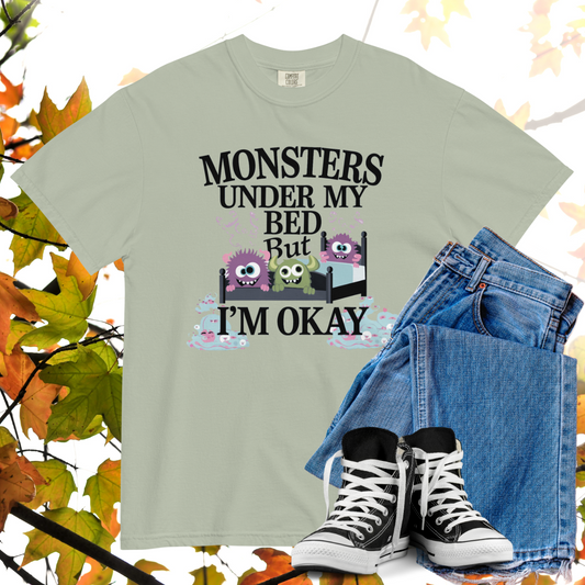 Monsters Under My Bed But I'm Okay Comfort Colors Heavyweight Halloween T-shirt