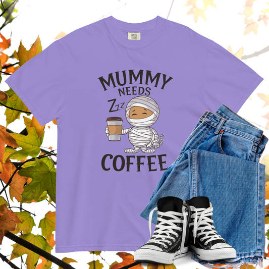 Mummy Needs Coffee Comfort Colors Heavyweight Halloween T-shirt
