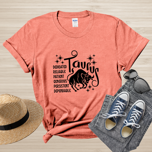 Taurus Zodiac T-Shirt - Astrology Short Sleeve Tee, Horoscope Birthday Gift for Star Sign Fashion