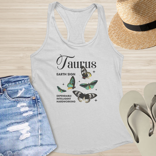 Taurus Butterfly Racerback Tank - Earthy Astrology Shirt with Butterfly for Inner Growth