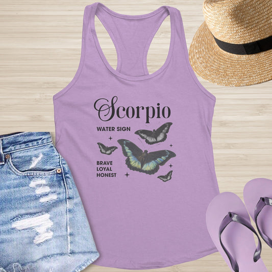 Scorpio Butterfly Racerback Tank - Deep Transformation Tank with Zodiac & Butterfly Art