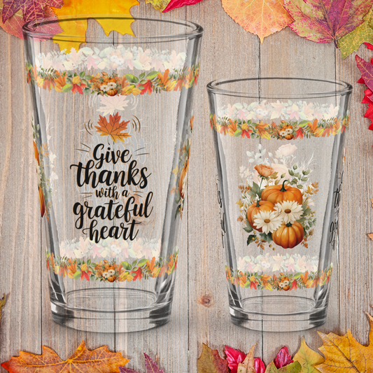 Give Thanks With A Grateful Heart Thanksgiving Pint Glass - Gratitude & Self-Care Gift