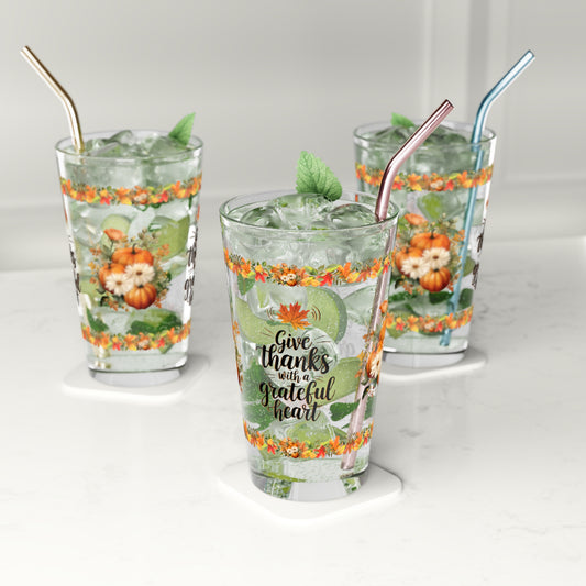 Give Thanks With A Grateful Heart 16oz Thanksgiving Pint Glass - Gratitude, Positivity, and Self-Care Gift