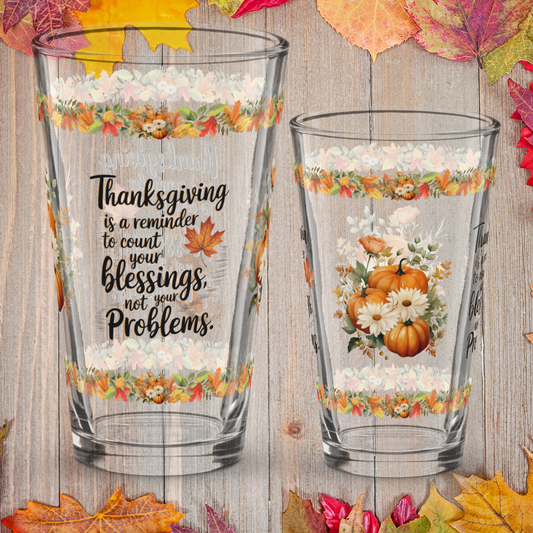 Thanksgiving Reminder To Count Blessings, Not Problems - Gratitude Pint Glass