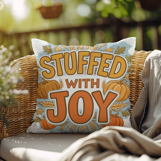 Stuffed With Joy Throw Pillow - Autumn Gratitude, Mindfulness, Cozy Comfort & Seasonal Décor