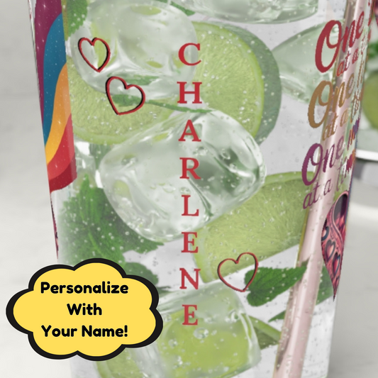 One Day At A Time One Hour At A Time: Personalized Valentine's Day Affirmation Pint Glass – Valentine's Day Self-Care Gift, Mindful Positivity Drinkware
