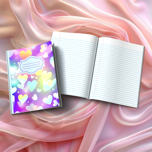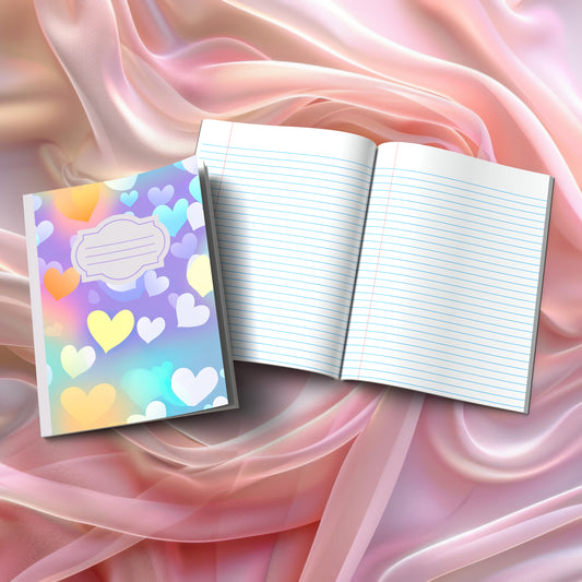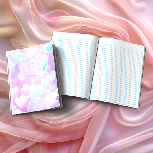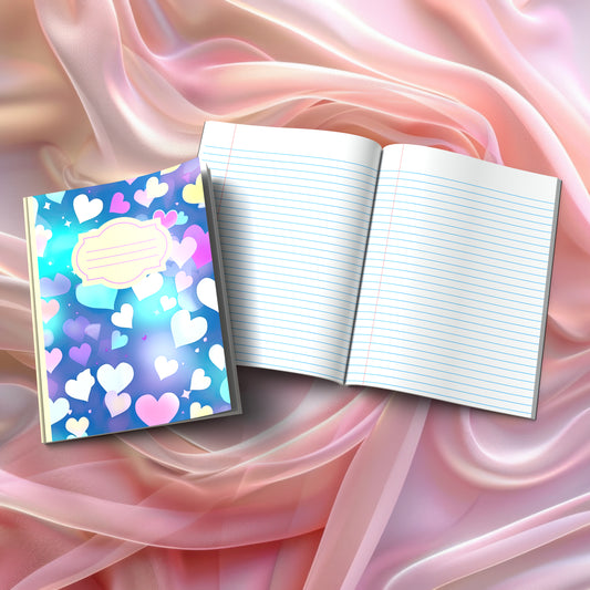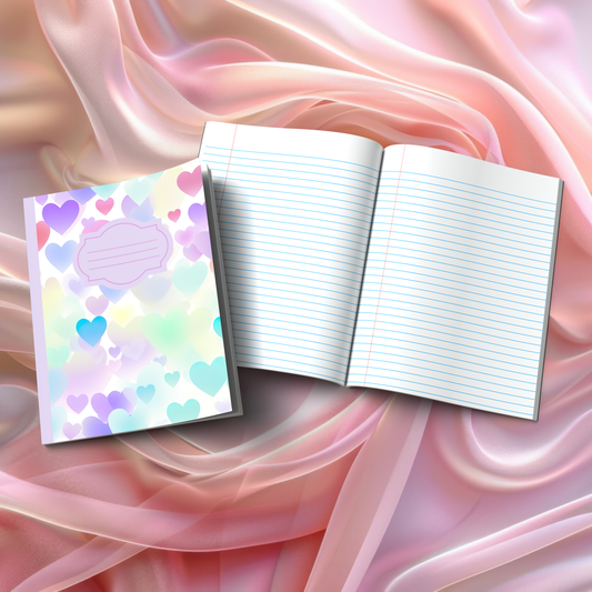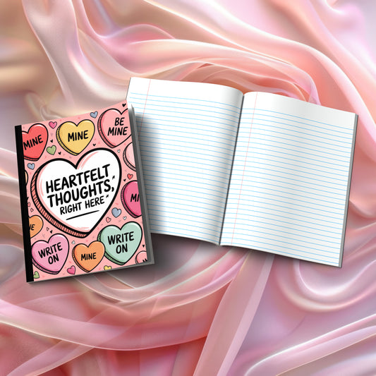 Valentine's composition notebooks for mindful journaling and self-discovery. Our collection features heart-themed visual designs (Pastel Dreams, Rainbow Hearts, Ocean Hearts, and more) plus inspiring message covers like "Love Yourself One Thought At A Time" and "Write Your Love Story Starting With You." Perfect for gratitude practice, therapeutic writing, and creative expression during Valentine's season and beyond.