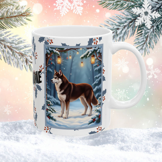 Husky (Chocolate Red) Winter Mug - Husky Coffee Mug, Rare Coat Snow Dog Cup