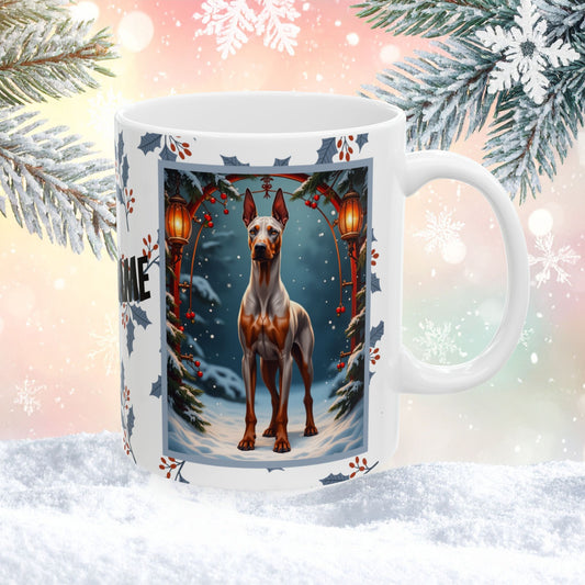 Doberman (Red & Rust) Winter Mug - Elegant Dobie Winter Tea Mug, Guardian Dog Gift