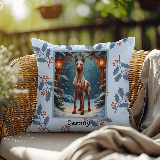 Doberman (Red) Pillow - Personalized Winter Dog Throw, Holiday Home Accent