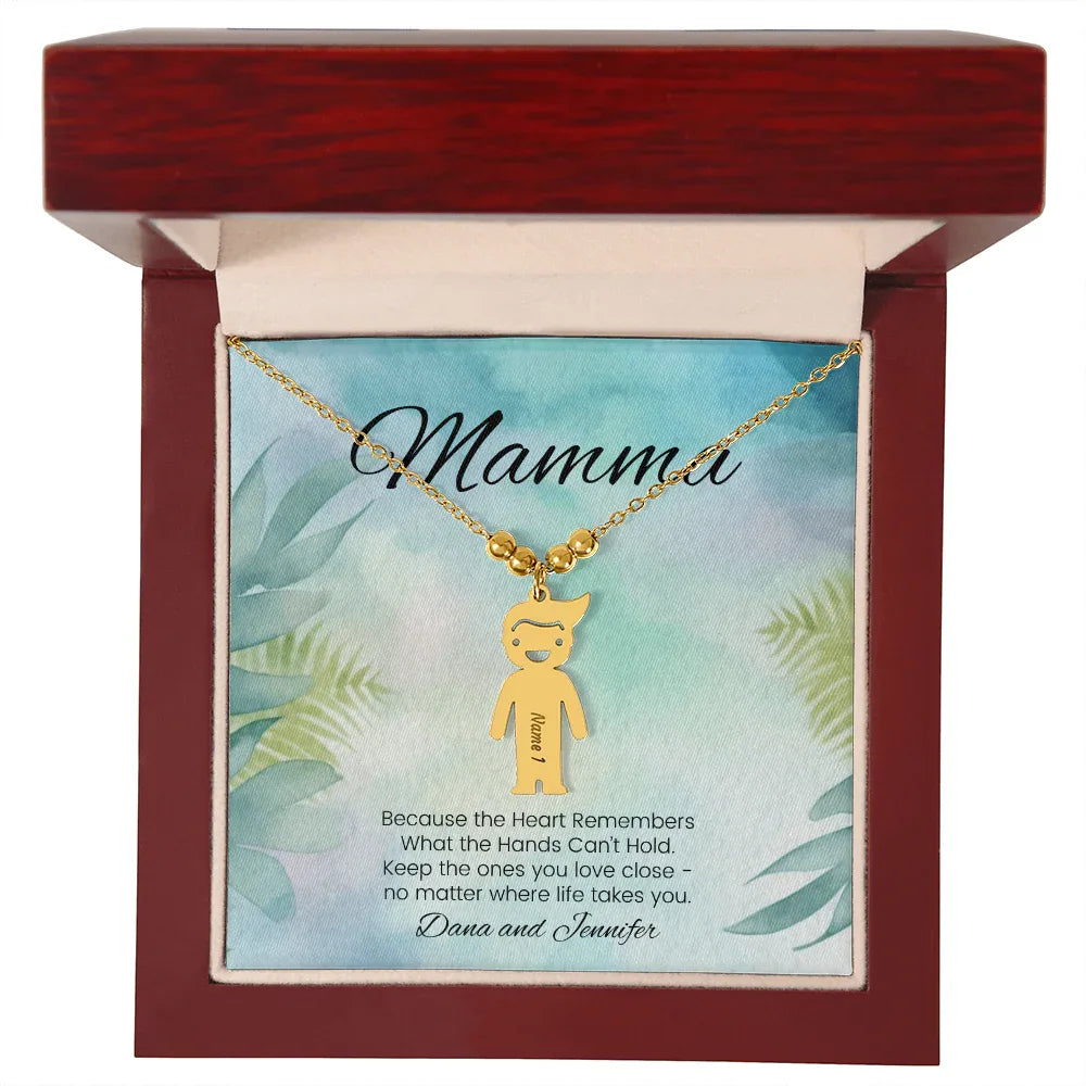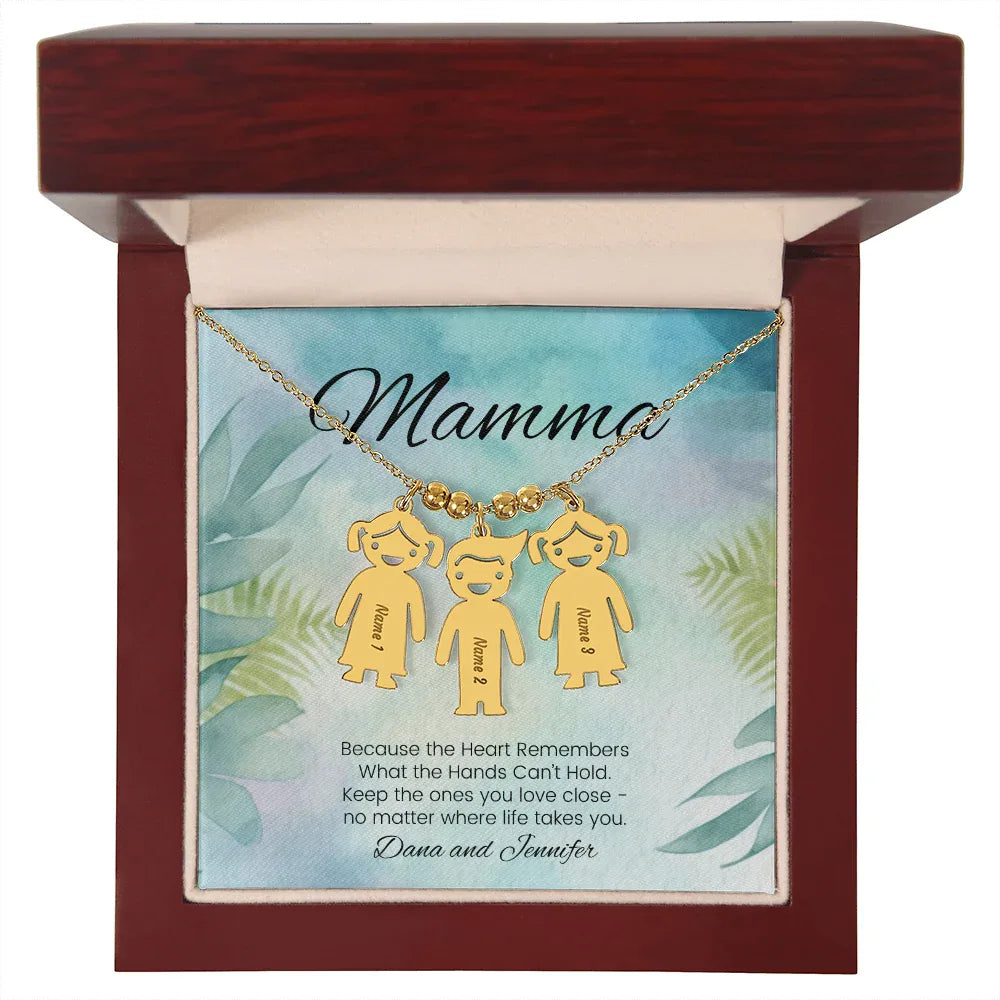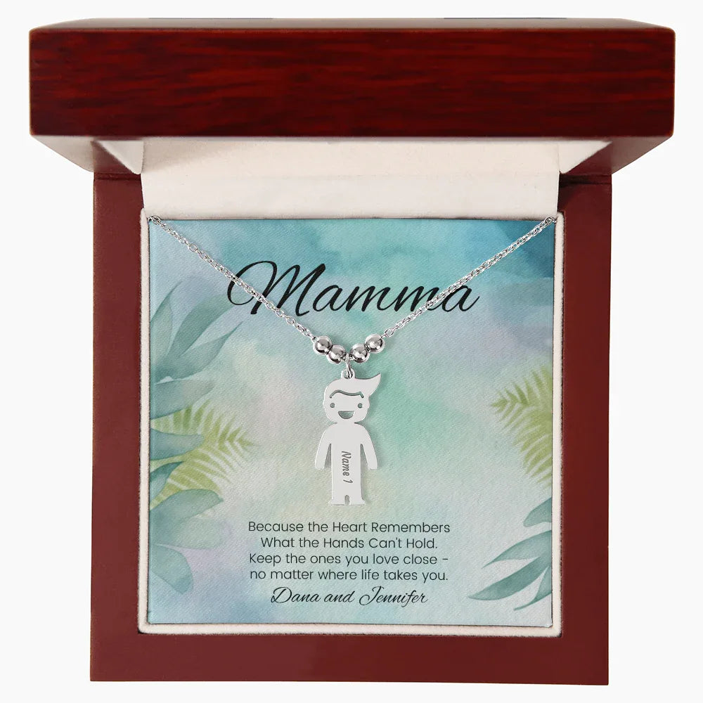 Because The Heart Remembers - Engraved Kids Charm Necklace for Mom or Grandma