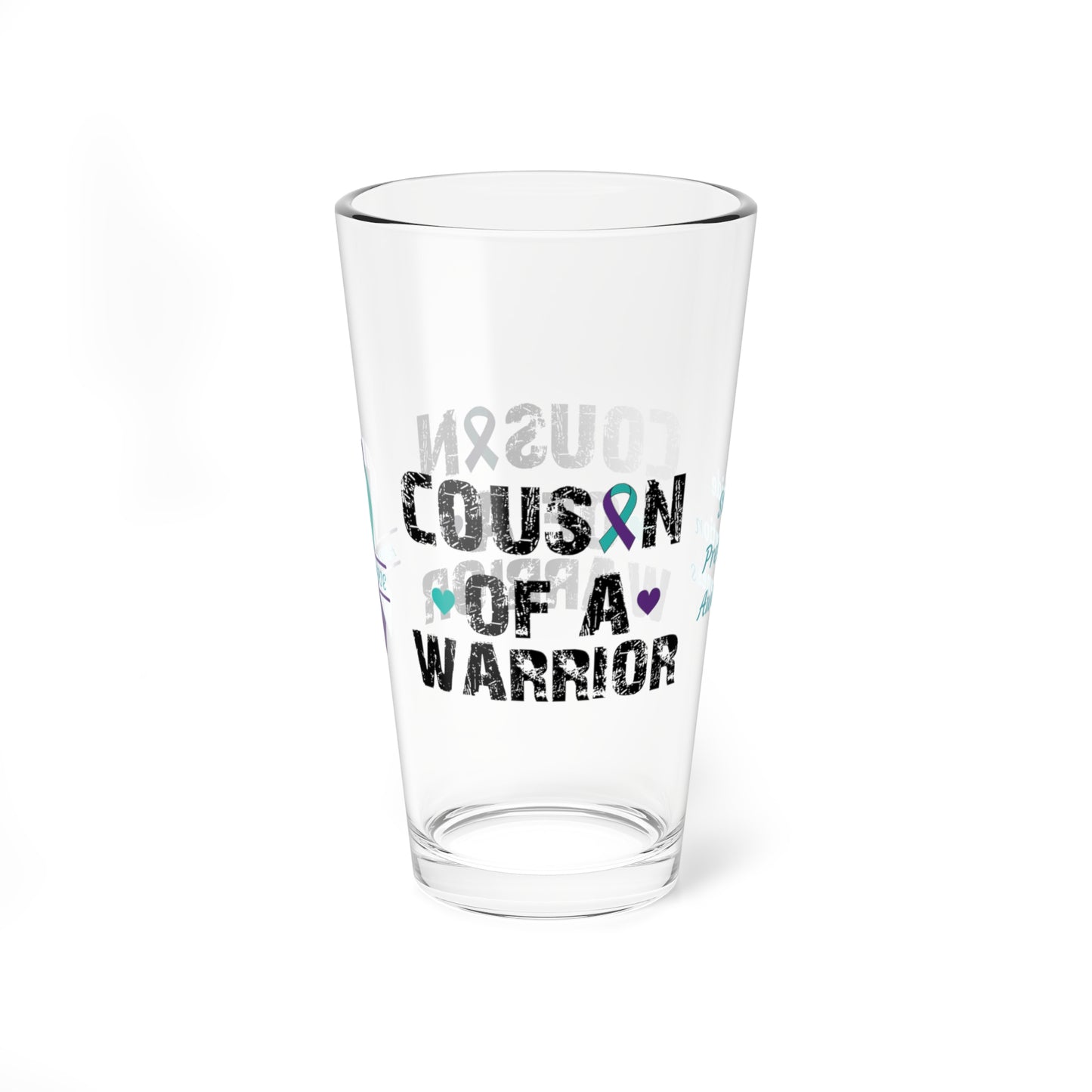 Cousin of a Warrior: Personalized Suicide Prevention Awareness Warrior Pint Glass - Proud Family Member