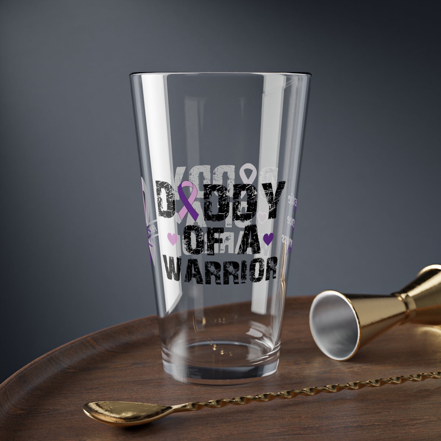 Custom DV Awareness Pint Glass - Daddy of a Warrior, Love & Empowerment