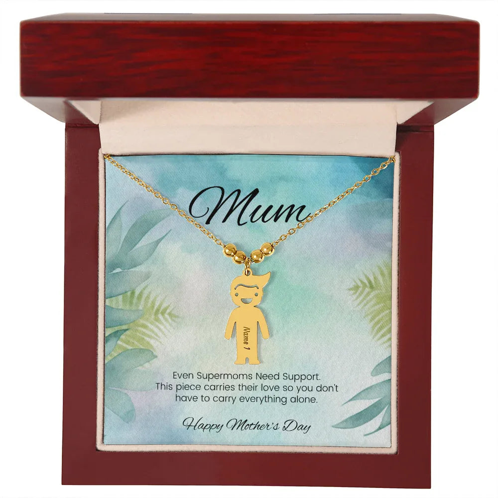 Even Supermoms Need Support - Engraved Kids Charm Necklace for Mom or Grandma
