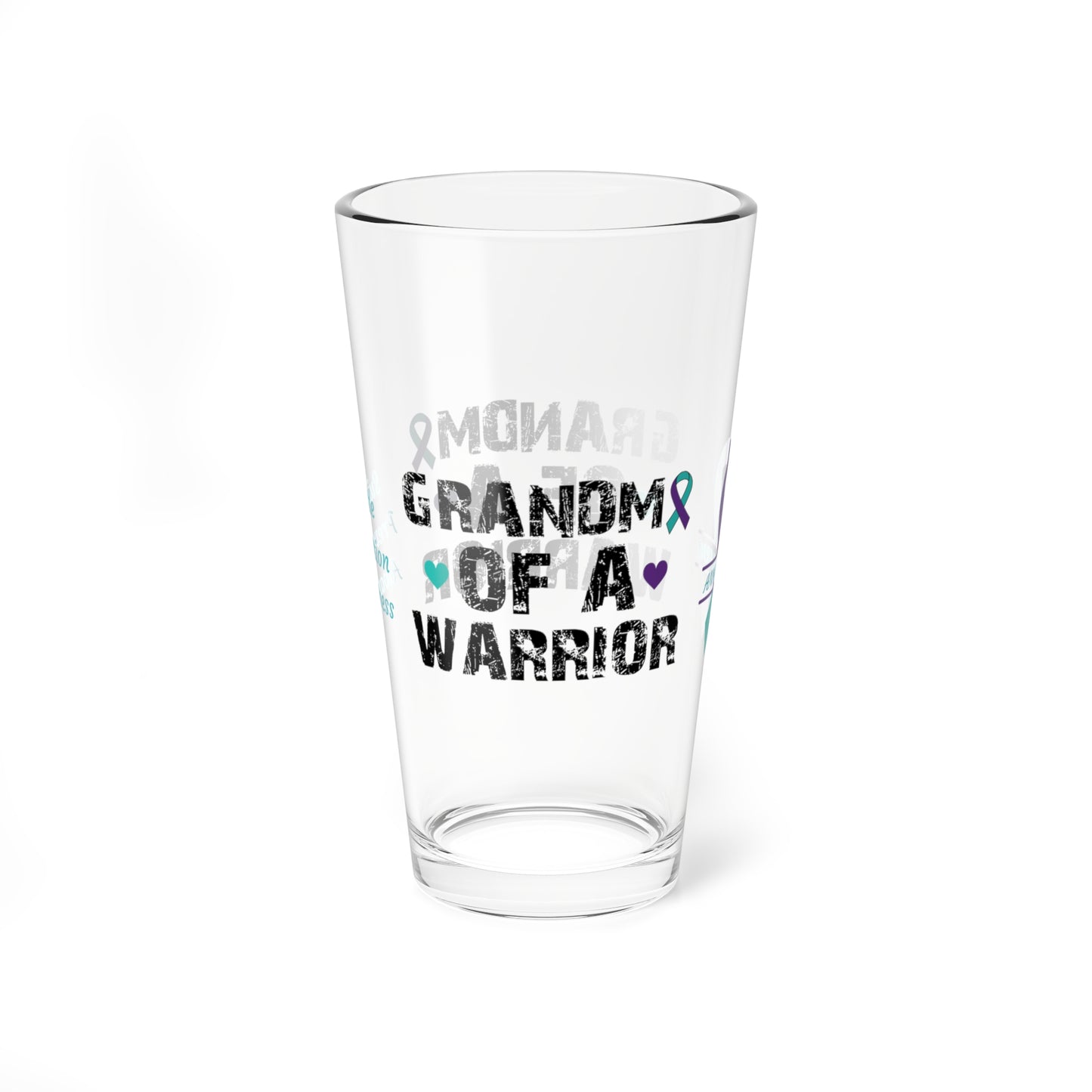 Grandma of a Warrior: Personalized Suicide Prevention Awareness Warrior Pint Glass - Proud Family Member