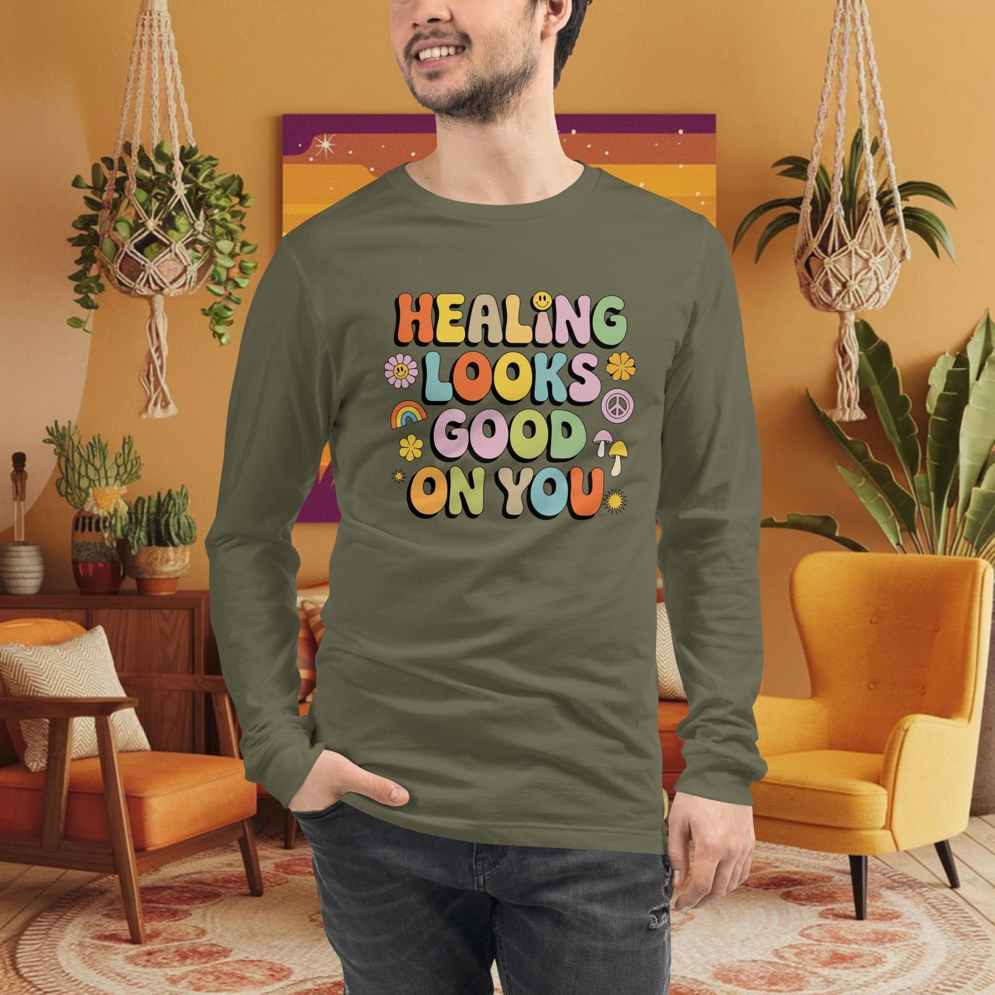 Healing Looks Good on You Long Sleeve Tee - Retro 70s Mental Health Shirt