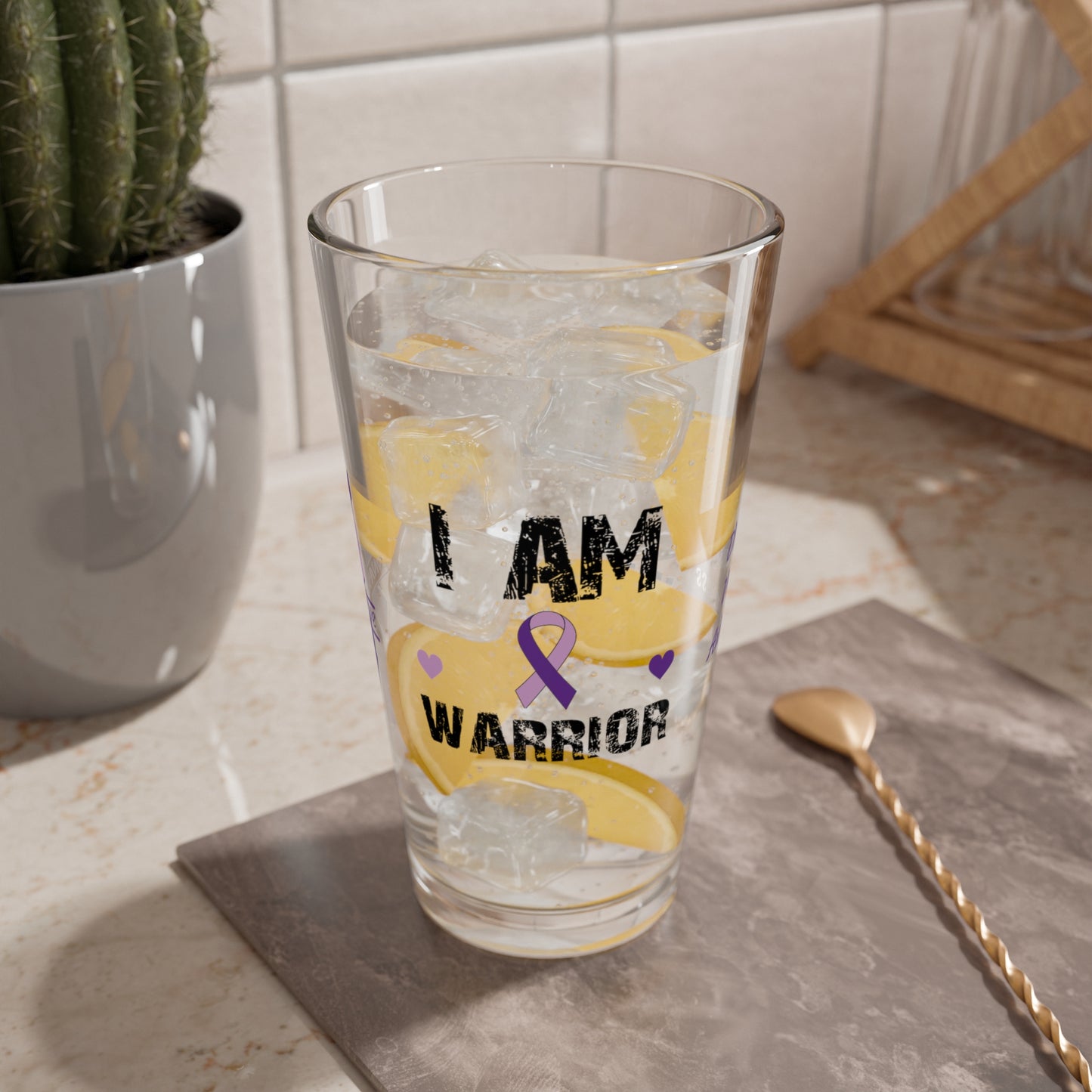 Custom DV Support Pint Glass - I Am of a Warrior, Strength & Love