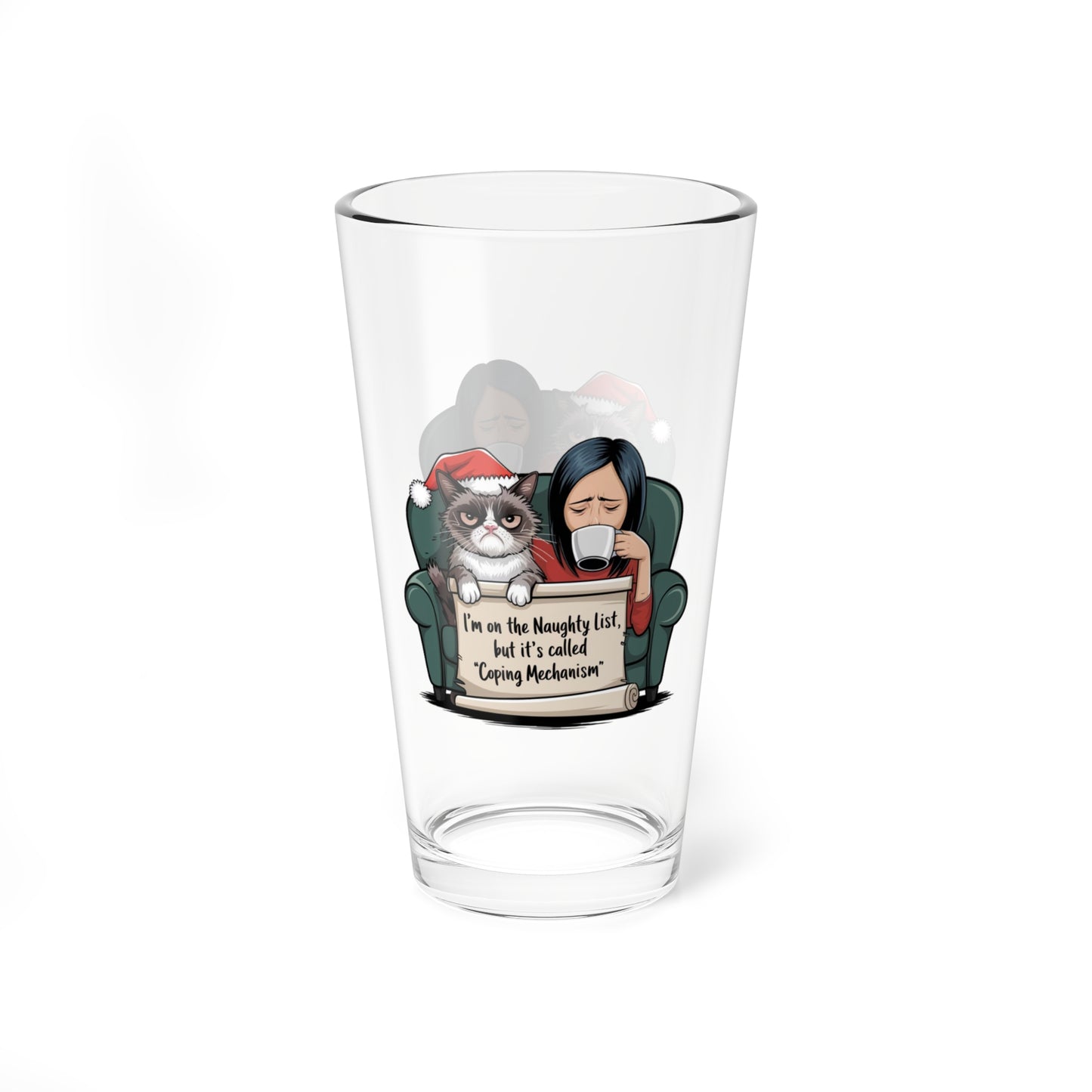 I'm On The Naughty List, But It's Called Coping Mechanism, Christmas Pint Glass, 16oz