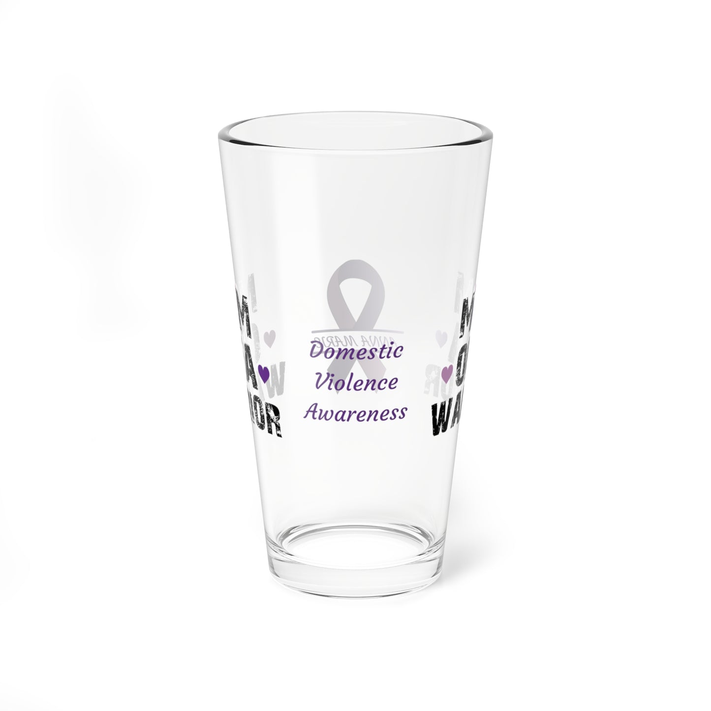 Custom Domestic Violence Awareness Pint Glass - Mom of a Warrior, Empowerment & Courage