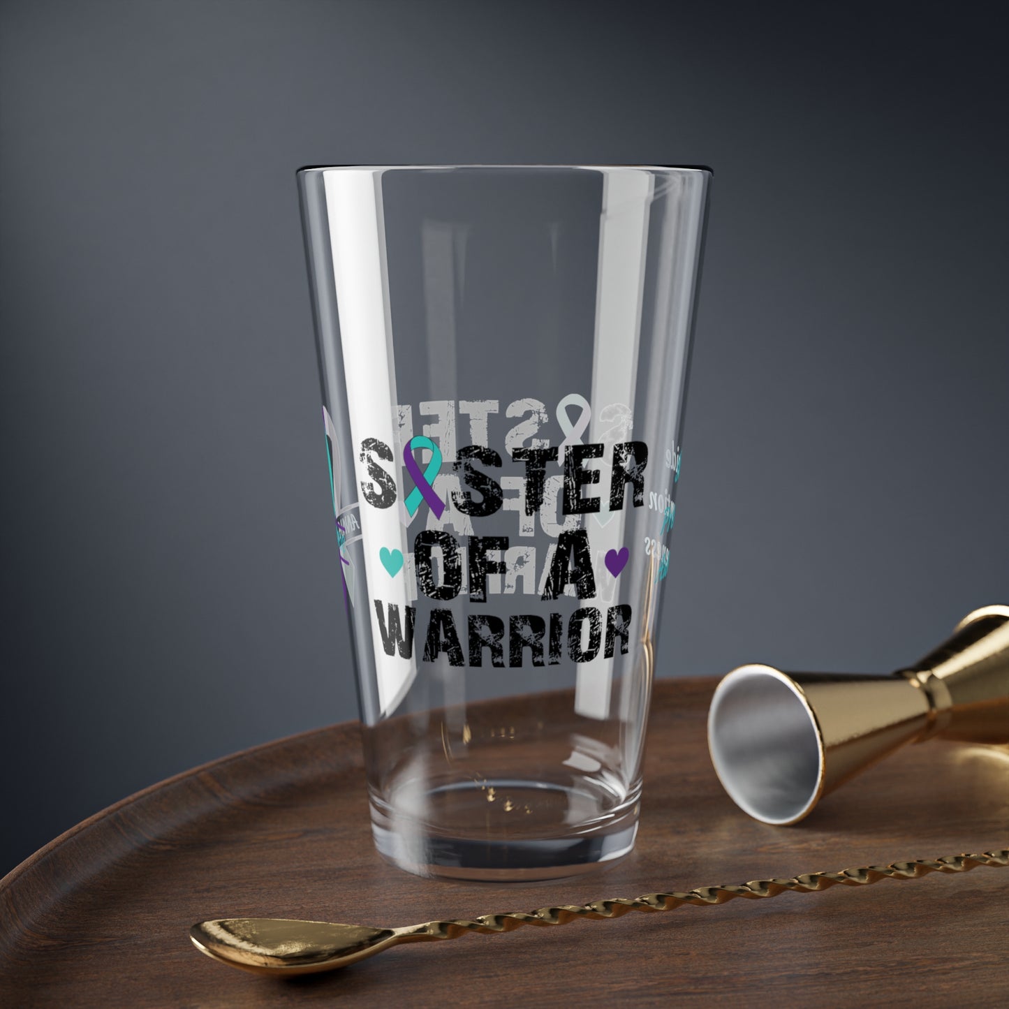 Sister of a Warrior: Personalized Suicide Prevention Awareness Warrior Pint Glass - Proud Family Member