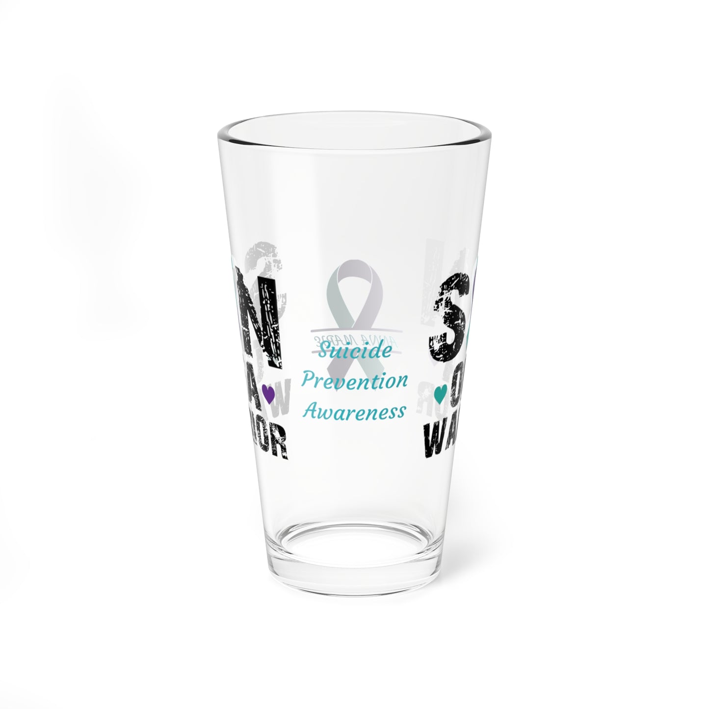 Son of a Warrior: Personalized Suicide Prevention Awareness Warrior Pint Glass - Proud Family Member